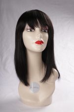Peluca de cabello 100% con flequillo recto 40 cm de largo, perfecta para quienes buscan un look moderno, cómodo natural